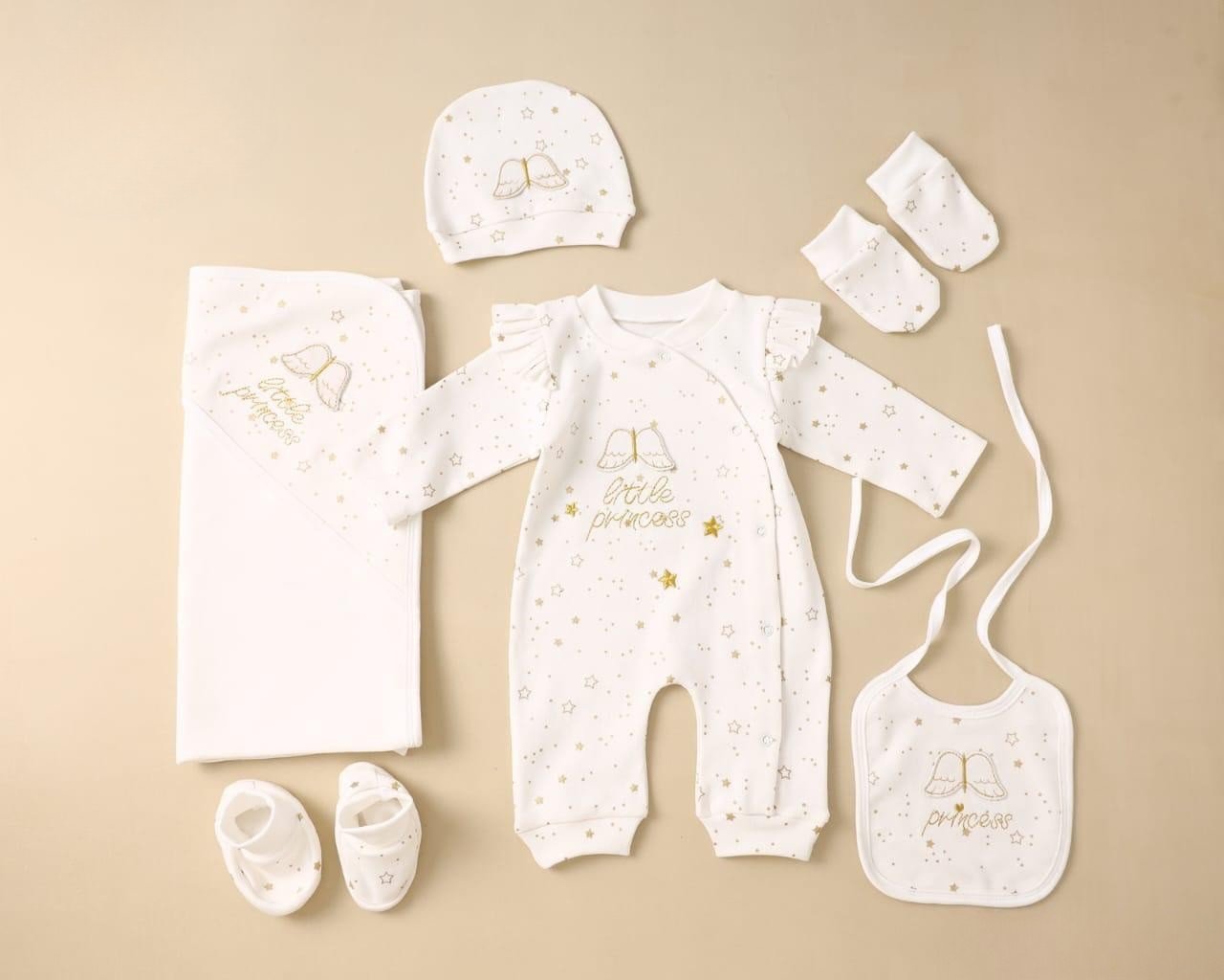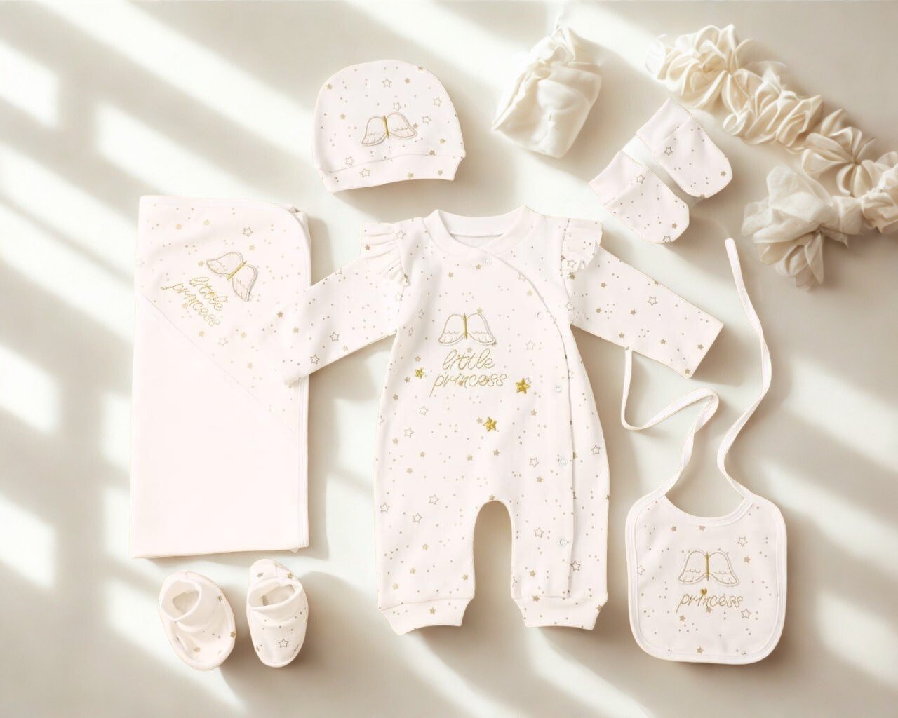 طقم سبوع بناتي 5 قطع نيو بورن مغلف في علبة لوكس أنيقة – بريتي.